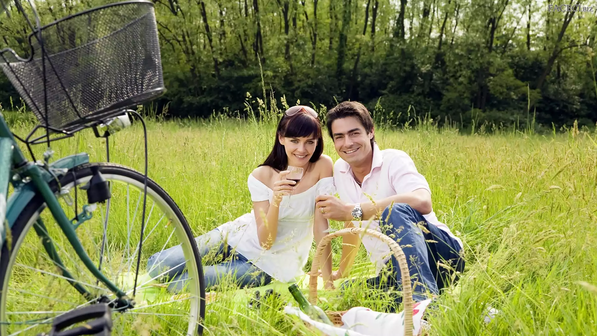 Rower, Łąka, Mężczyzna, Kobieta, Piknik - faceci.biz